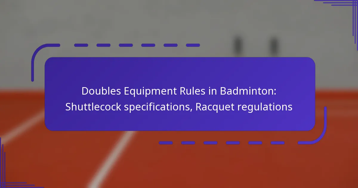 In doubles badminton, the specifications for shuttlecocks and racquets are essential for ensuring fair play and optimal performance. Shuttlecocks must meet specific dimensions, weight, and material standards, while racquets are regulated in terms of size, weight, and string tension. Familiarity with these rules helps players select the appropriate equipment to enhance their game and maintain consistency during competitive matches.