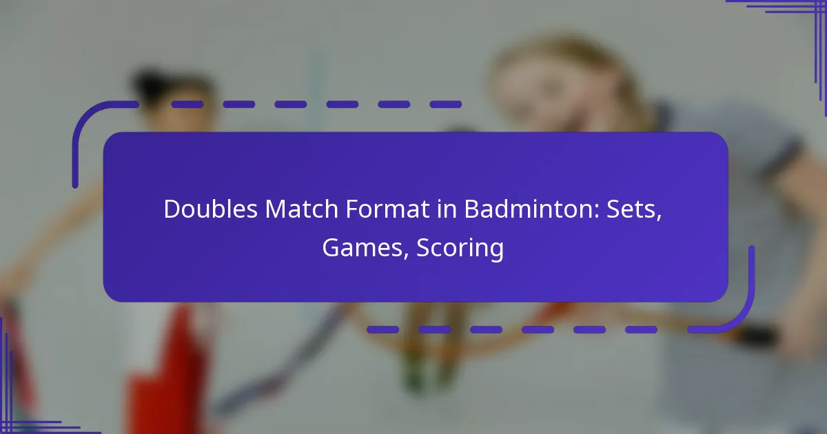 The doubles match format in badminton features two teams of two players each, competing in a structured environment that differs from singles play. Matches are typically played in a best-of-three games format, with each game reaching 21 points using rally scoring, ensuring a dynamic and competitive atmosphere. Specific rules regarding service, player rotation, and positioning are essential for effective gameplay in doubles matches.