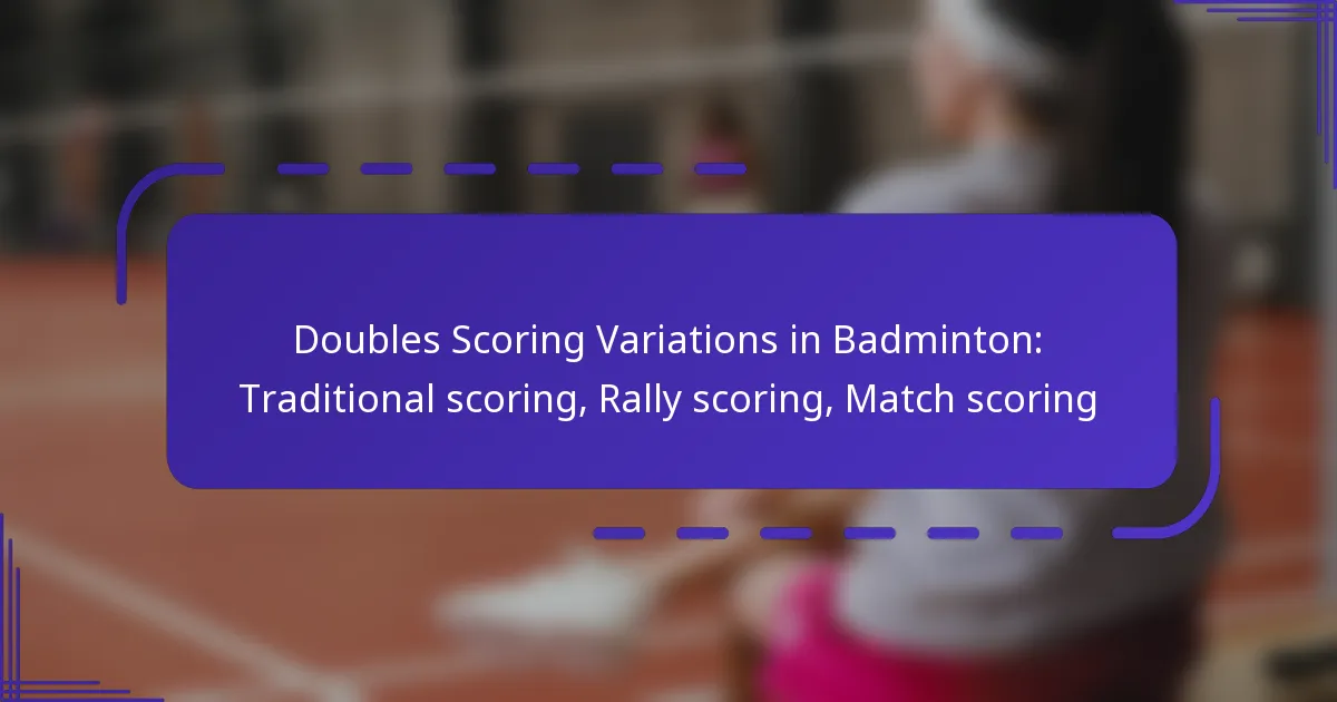 Doubles badminton features several scoring variations, primarily traditional scoring, rally scoring, and match scoring. Each method has unique rules that influence gameplay and strategy, affecting how points are earned and matches are won.